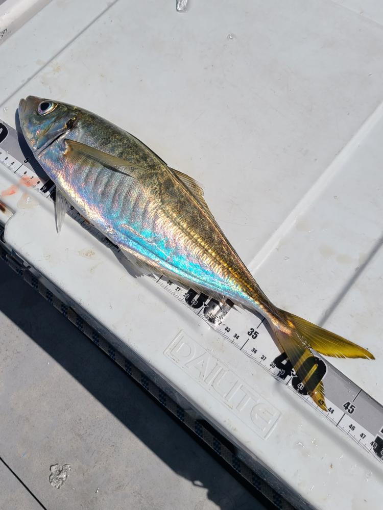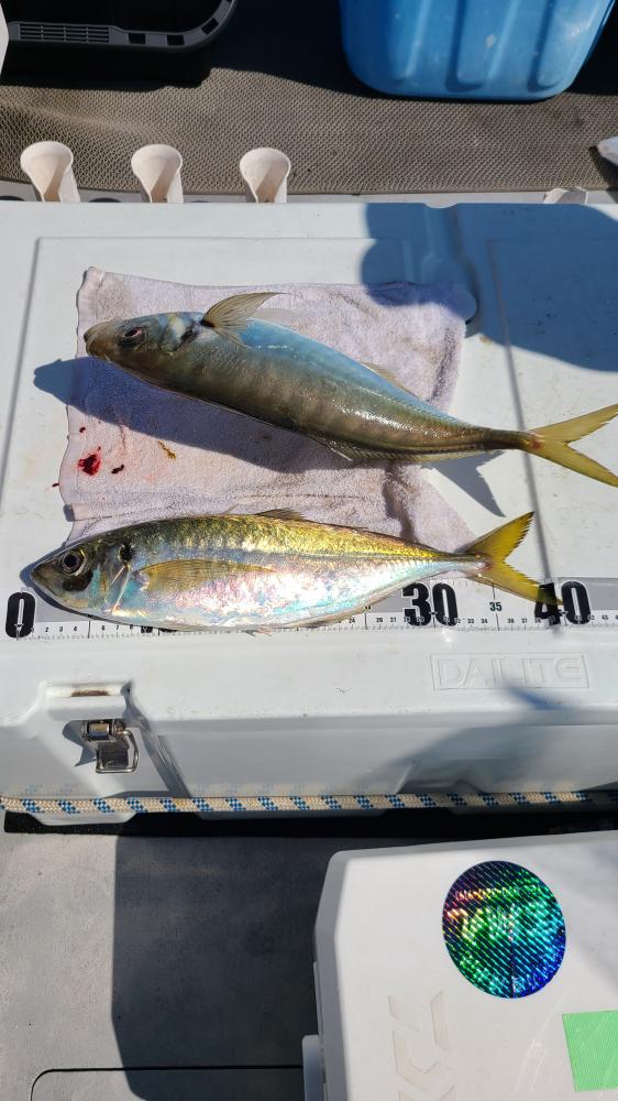 途中から大アジのお土産をと 39~45センチの幅広アジが無双状態>゜)))彡